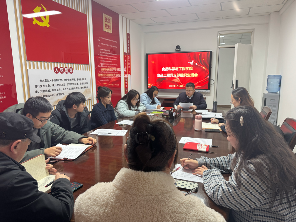 为深入学习贯彻习近平新时代中国特色社会主义思想,全面落实党的二十届四中全会精神,按照食品科学与工程学院党总支统一部署,2026年1月12日,食品工程党支部在明远楼515会议室召开2025年度组织生活会,并组织开展民主评议党员。本次会议由党支部书记曹松敏同志主持。会前,党支部严格按照组织生活会相关要求,围绕会议主题,认真开展集中学习和个人自学,深入学习贯彻习近平新时代中国特色社会主义思想和党的二十大精神。同时,支部党员之间广泛开展谈心谈话,深入查摆问题,认真梳理形成问题清单,明确整改方向和具体措施,为高质量召开组织生活会奠定了坚实基础。会上,曹松敏同志首先组织全体党员学习了习近平总书记在中共中央政治局民主生活会上的重要讲话精神。随后,全体党员紧密结合思想实际、工作实际和教学科研情况,逐一进行对照检查发言,严肃认真地开展批评与自我批评。大家坚持问题导向,实事求是,达到了统一思想、凝聚共识、促进提升的良好效果。学院党总支副书记王松磊同志到会指导,并结合学院发展实际,对食品工程党支部建设和青年教师成长提出了明确要求。他强调,要持续推动教学、科研与思想政治教育的协同融合,引导青年教师在教、产、学、研一体化发展中不断提升政治素养和专业能力,努力成长为新时代高素质教师队伍的重要力量。最后,按照组织程序,党支部组织开展了民主评议党员工作,依据“优秀”“合格”“基本合格”“不合格”的标准,对支部党员进行了客观...