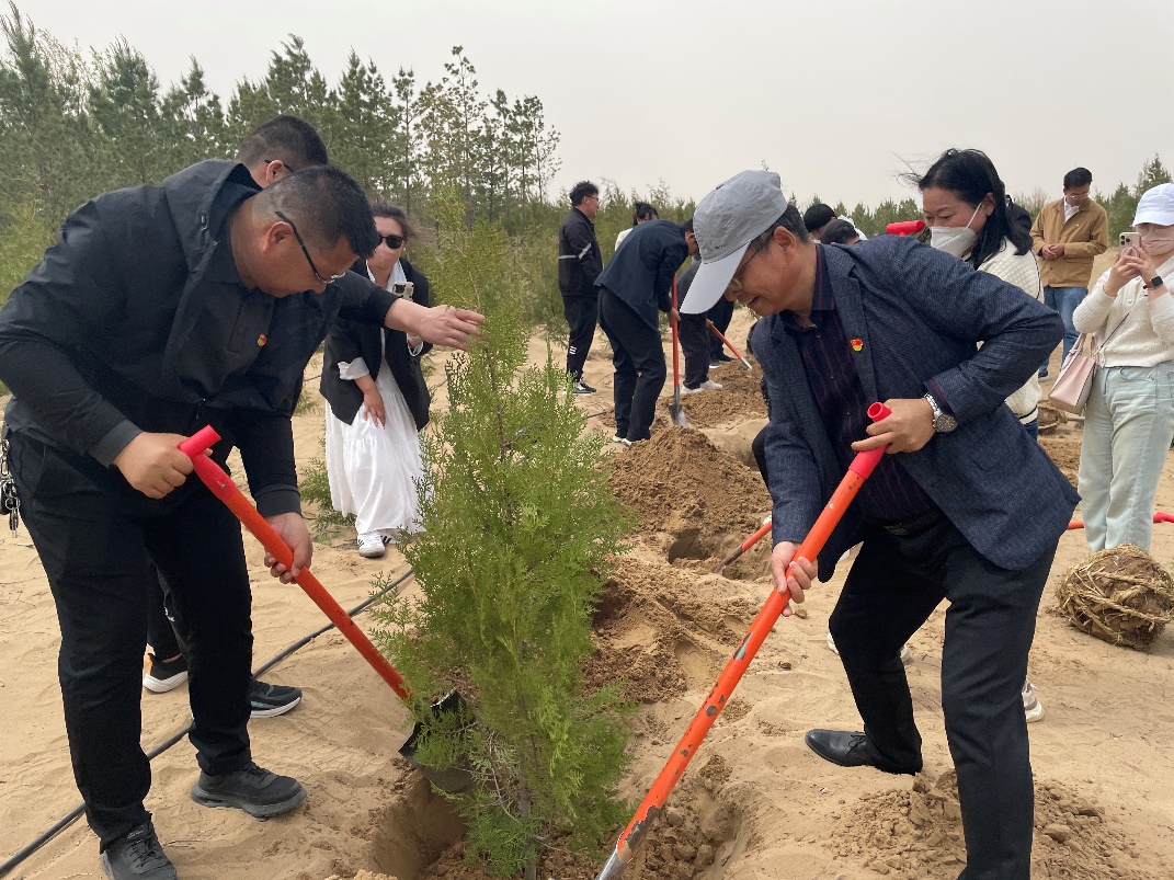 在宸喜园,大家怀着崇敬的心情,来到习近平总书记2008年亲手种下的枣树前,感受一棵树见证沙漠变绿洲的伟大变迁。在鲜红的党旗下,全体党员干部庄严肃立,重温入党誓词,铿锵有力的誓言回荡在绿意盎然的土地上,激励每一位党员不忘初心、牢记使命,坚定生态文明建设的责任与担当。