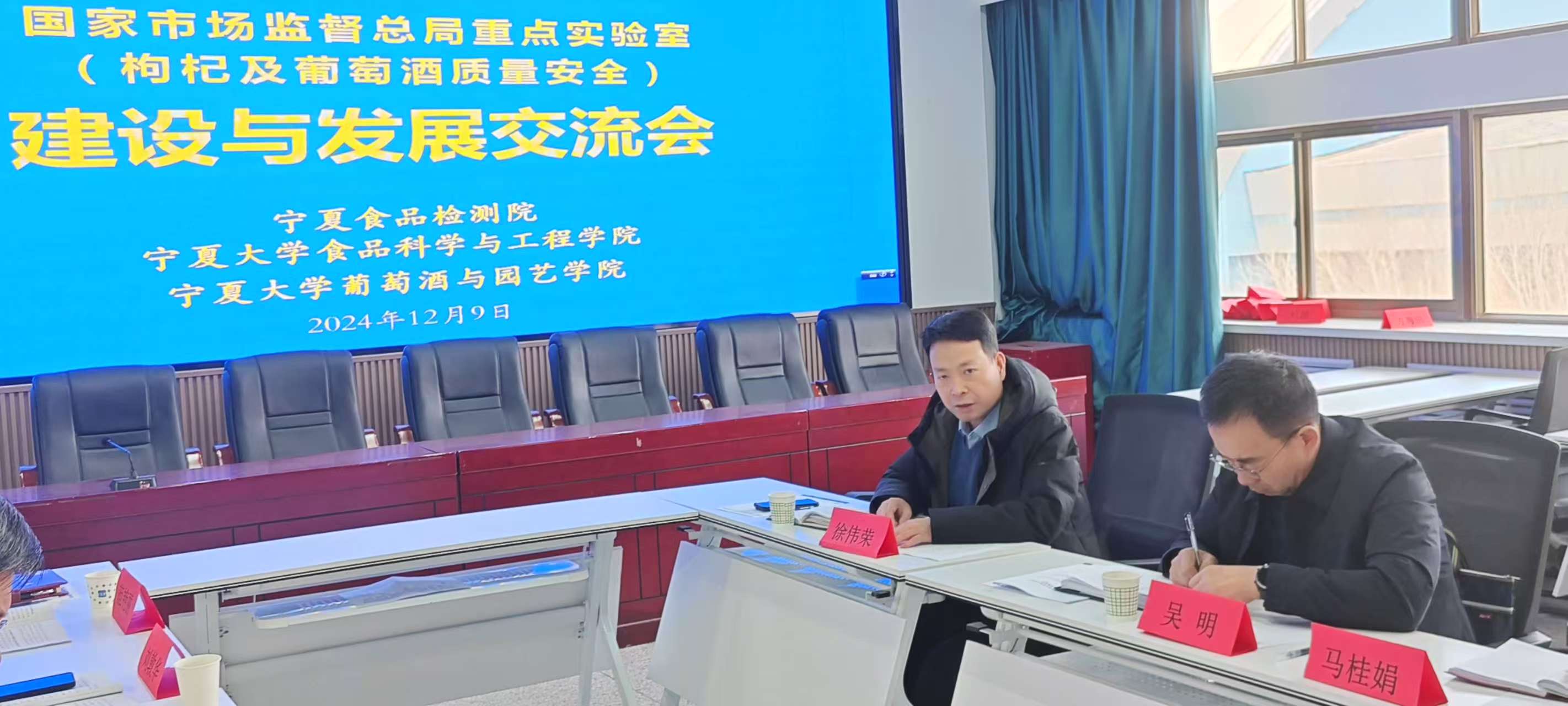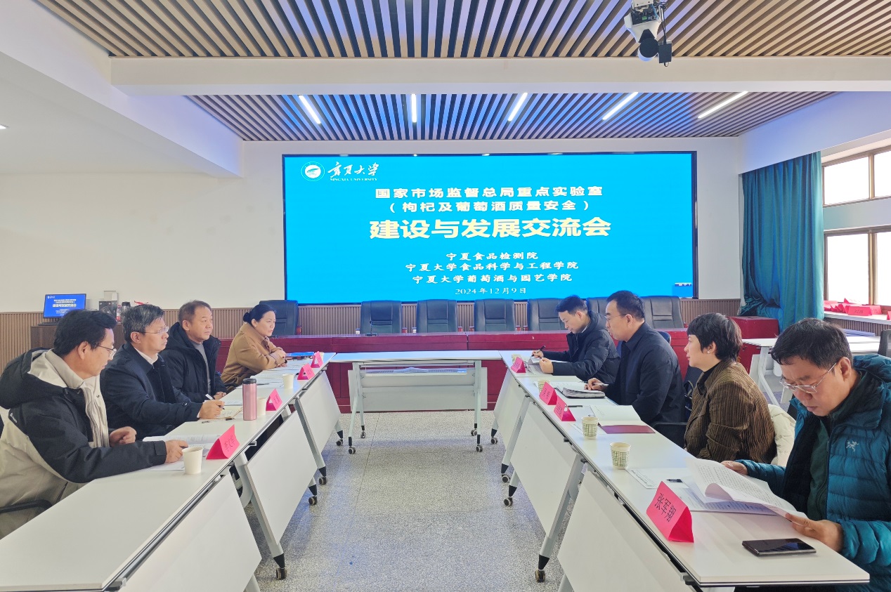 12月9日,宁夏回族自治区食品检测研究院院长吴明、副院长马桂娟一行莅临食品科学与工程学院,共商国家市场监督管理总局重点实验室(枸杞及葡萄酒质量安全)建设发展,助力宁夏特色食品产业高质量发展。