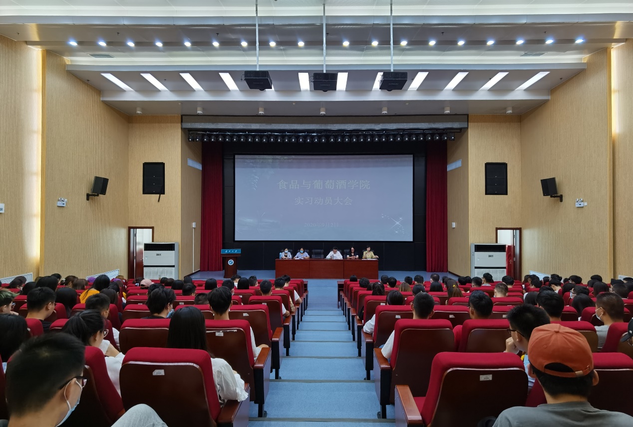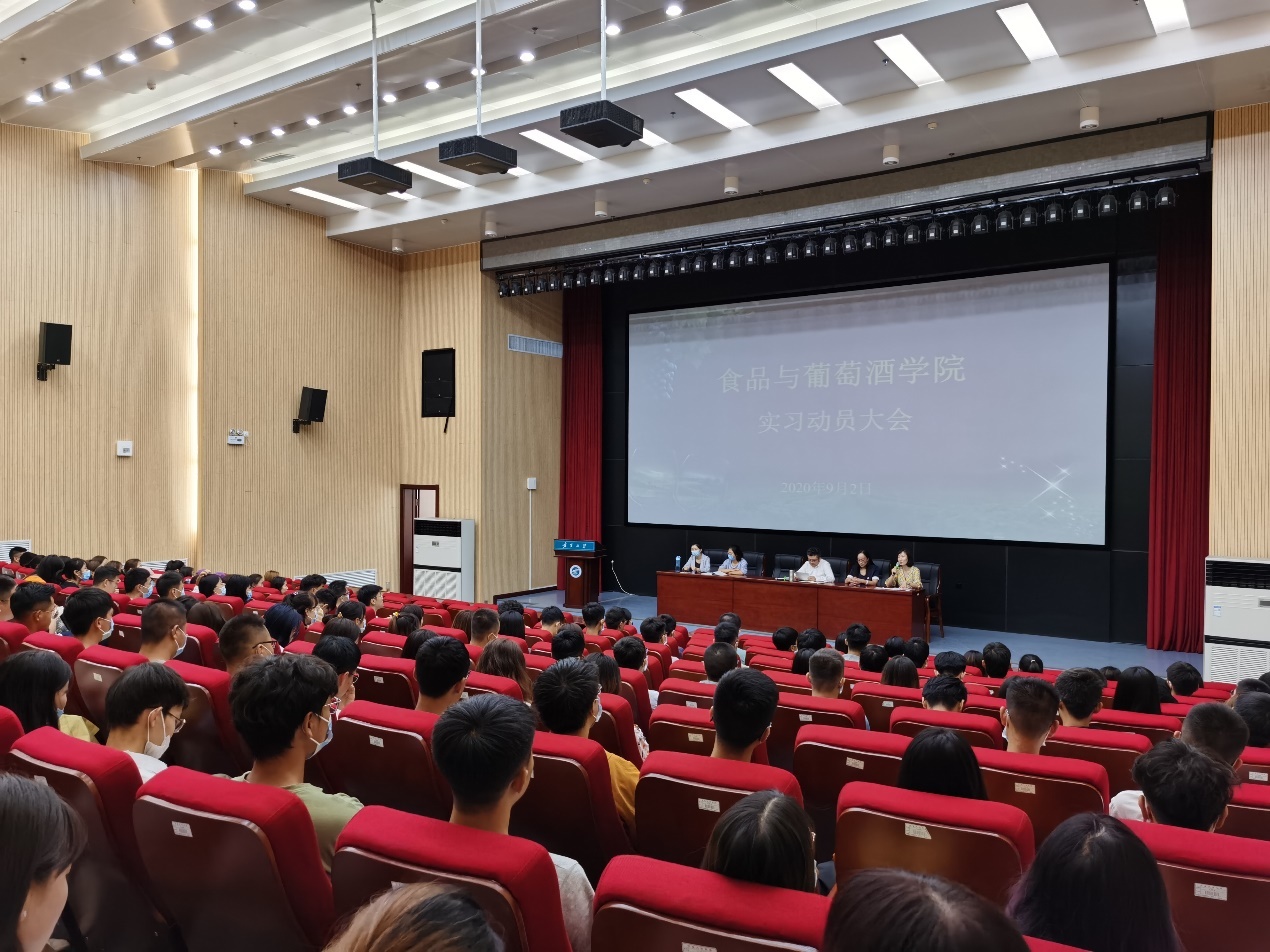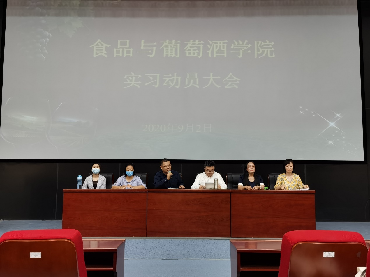 按照人才培养方案要求和教学计划安排,2020年9月2日下午15:30,我院在科技楼一楼多功能报告厅组织开展实习动员大会,学院党总支副书记马浩谦老师、副院长方海田老师、葡萄与葡萄酒工程教研室主任孙悦老师、葡萄酒营销教研室主任李茹一老师、葡萄酒文化旅游教研室主任毛凤玲老师、教学科研办公室薛婷婷老师以及2017、2018级全体同学参加了动员会。