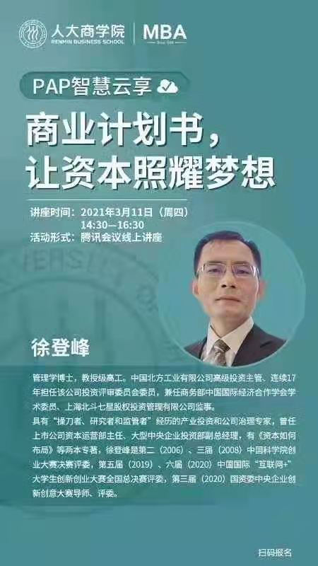 学术讲座|“商业计划书,让资本照耀梦想”