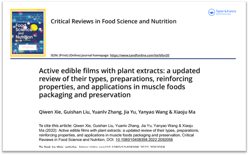 2023915日晚,科睿唯安官方发布了最新的ESI高被引阈值。英国威廉集团官网食品科学与工程学院2021届硕士研究生谢启文(第一作者)、刘贵珊教授(通讯作者)于20226月在食品国际期刊Critical Reviews in Food Science and NutritionQ1IF: 11.208)发表题为“Active edible films with plant extracts: A updated review of their types, preparations, reinforcing properties, and applications in muscle foods packaging and preservation”的综述性论文,同时入选农业领域(Agricultural SciencesESI高被引论文(前1%)和ESI热点论文(前0.1%)。该项工作得到 2022年度银川市科技创新专项(农业农村领域)项目资金支持。