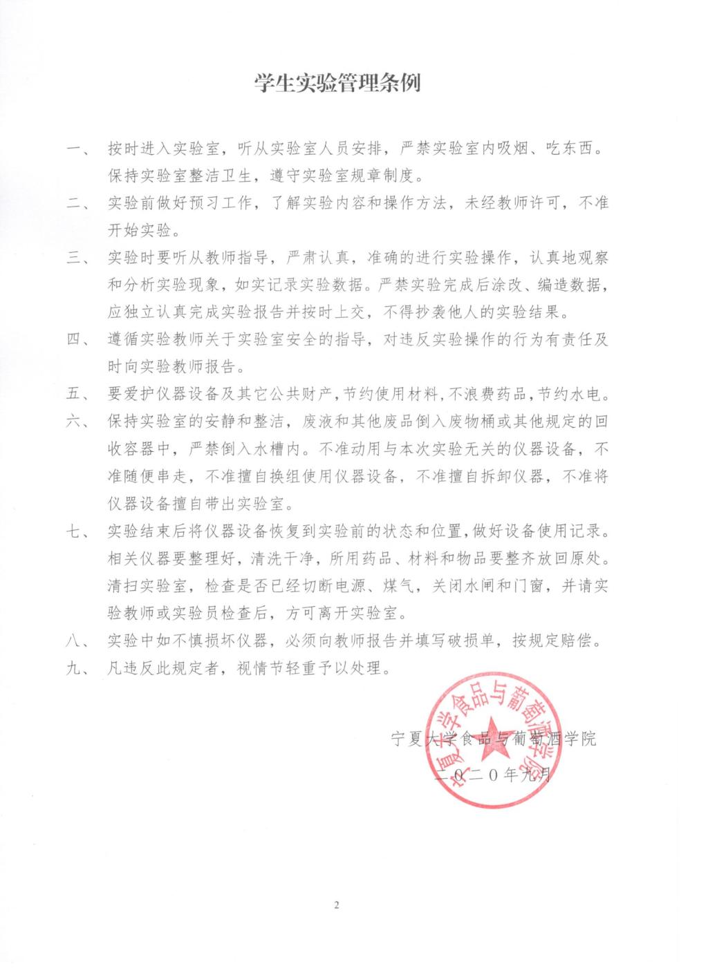 食品与葡萄酒学院学生实验管理条例