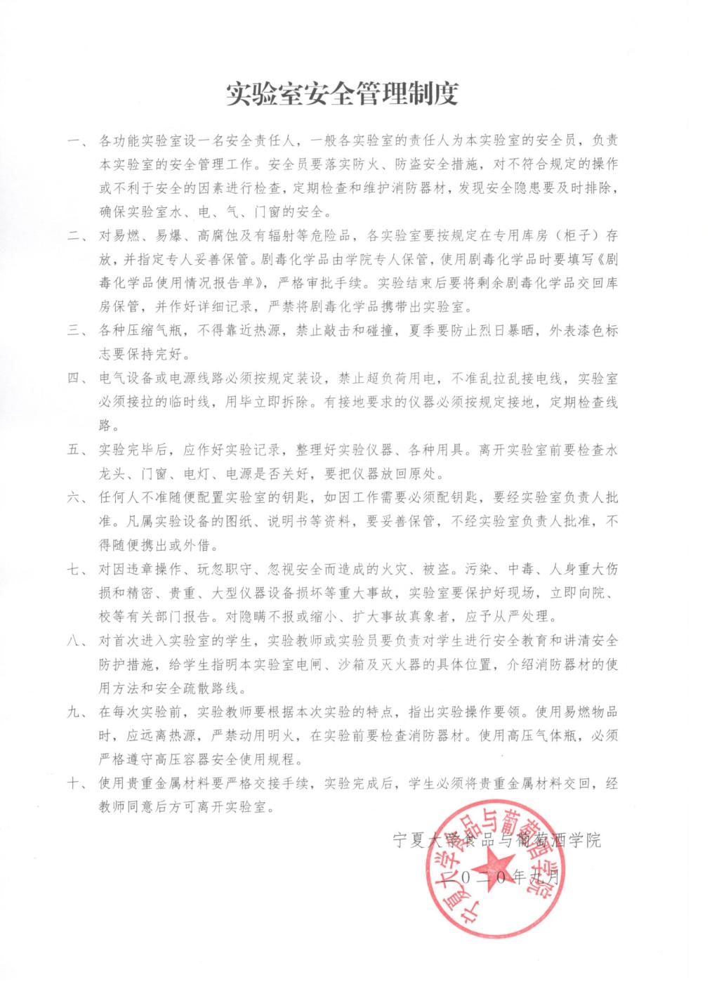 食品与葡萄酒学院实验室安全管理制度